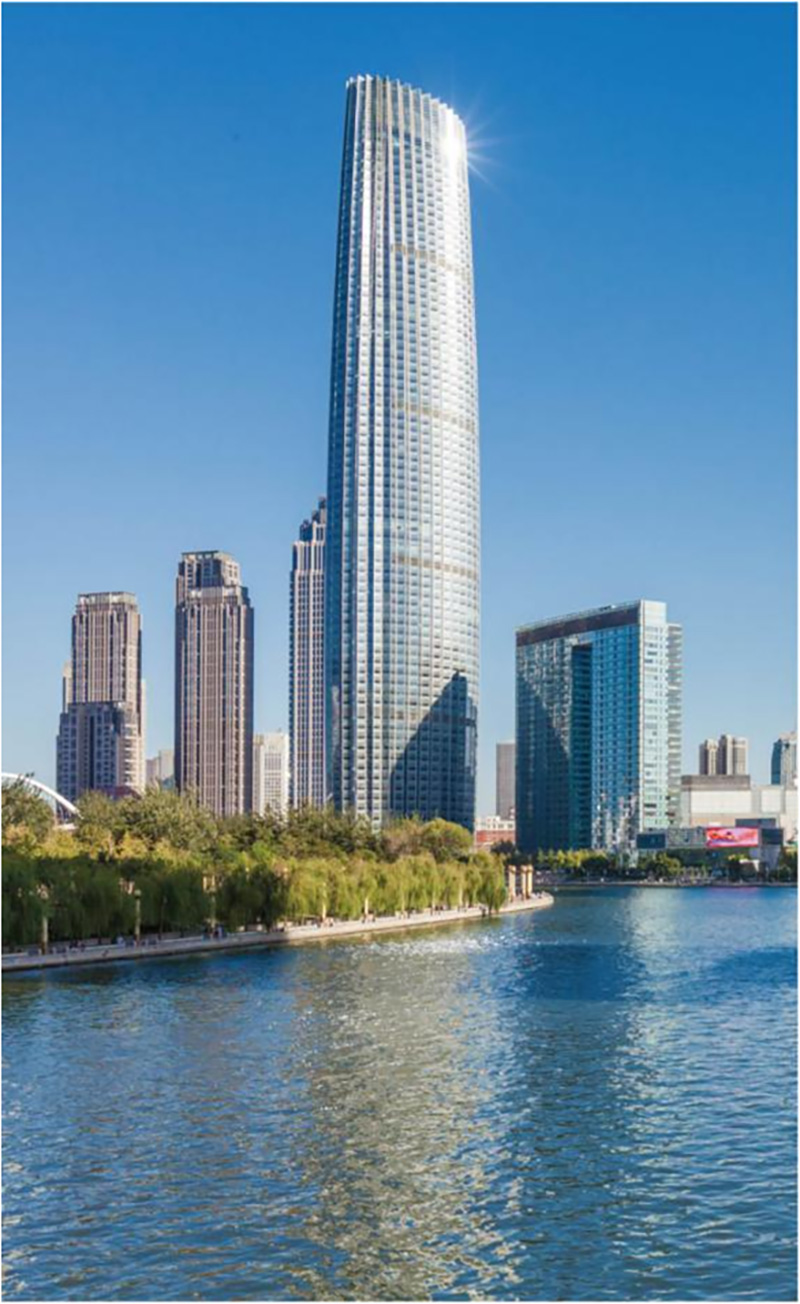 津塔是天津市新的地標(biāo)式建筑,津塔高336.9米,并在中國(guó)已建成的摩天大樓中排名第7位,在世界已建成的摩天大樓中排名第25位,總面積約34.4萬(wàn)平米,混合結(jié)構(gòu),最高75層,336.9米高,其中鋼結(jié)構(gòu)單體最大面積20萬(wàn)平米。