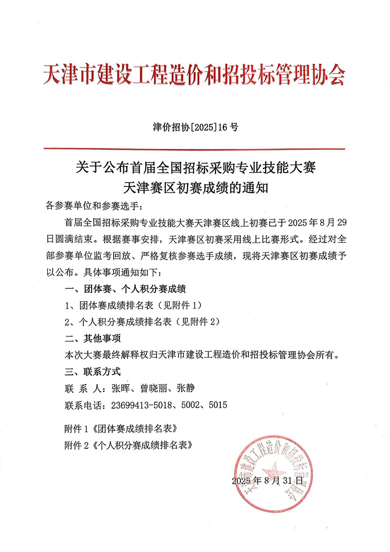 近日,由天津市建設(shè)工程造價和招投標(biāo)管理協(xié)會舉辦的首屆全國招標(biāo)采購專業(yè)技能大賽天津賽區(qū)比賽圓滿落幕。此次天津賽區(qū)匯聚了全市25家優(yōu)秀企業(yè)和140名行業(yè)精英同臺競技,天津咨詢所屬泛亞咨詢在激烈競爭中脫穎而出,斬獲團體賽桂冠,武宇哲、石恩婧、張典等3名員工成功躋身全市個人積分賽排名前十,充分彰顯了泛亞咨詢在招標(biāo)采購領(lǐng)域的專業(yè)實力與人才優(yōu)勢。