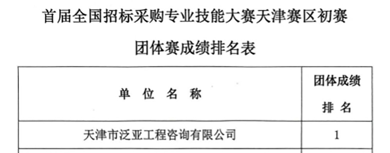 喜  報——泛亞咨詢斬獲首屆全國招標(biāo)采購專業(yè)技能大賽  天津賽區(qū)團體及個人雙第一