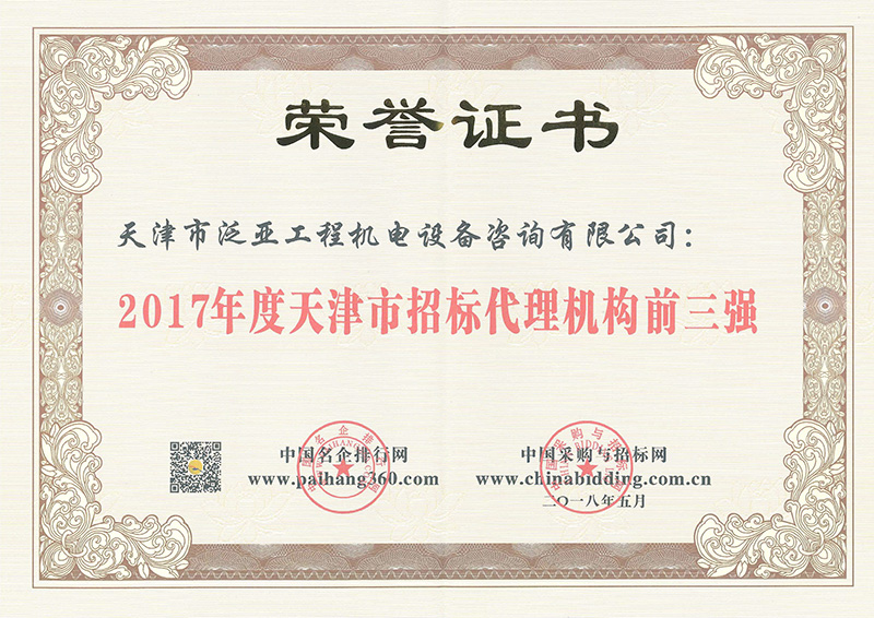 2017招標代理天津市前三