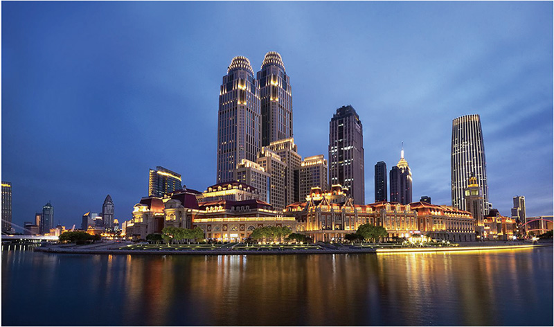津灣廣場位于天津市和平區(qū)的一處海河河灣南岸,為緊鄰海河、面向天津站的歐式建筑群。建筑面積17.1萬平米,由5座歐式風格的地上商業(yè)建筑及地下商業(yè)街、停車場共同構(gòu)成。其建筑風格與周邊原租界內(nèi)的歷史建筑一致,為天津金融城的標志性區(qū)域。